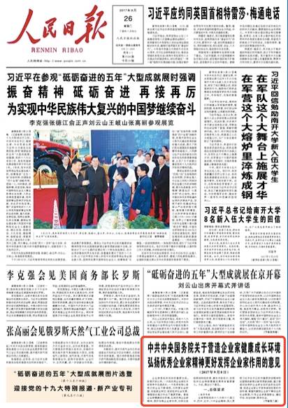 習近平總書記曾指出,市場活力來自於人,特別是來自於企業家,來自於企業家精神。日前,中共中央、國務院就下發了一則意見,內容是“營造企業家健康成長環境”、“弘揚優秀企業家精神”、“更好發揮企業家作用”。