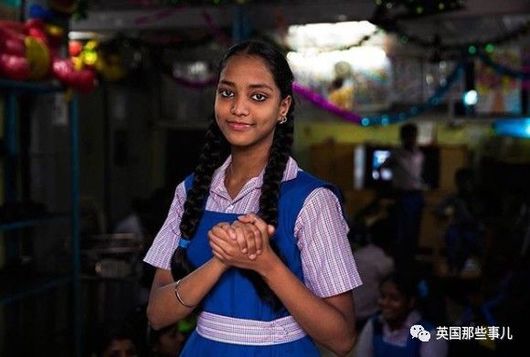 圖中的女孩耳聾,她比了一個印度手語中“友誼”的手勢。
