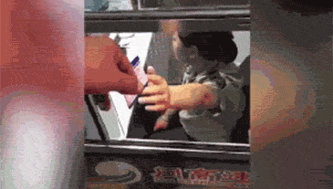 即使近在咫尺,兩人卻在收費窗口都倔強着不肯把手多伸一釐米。