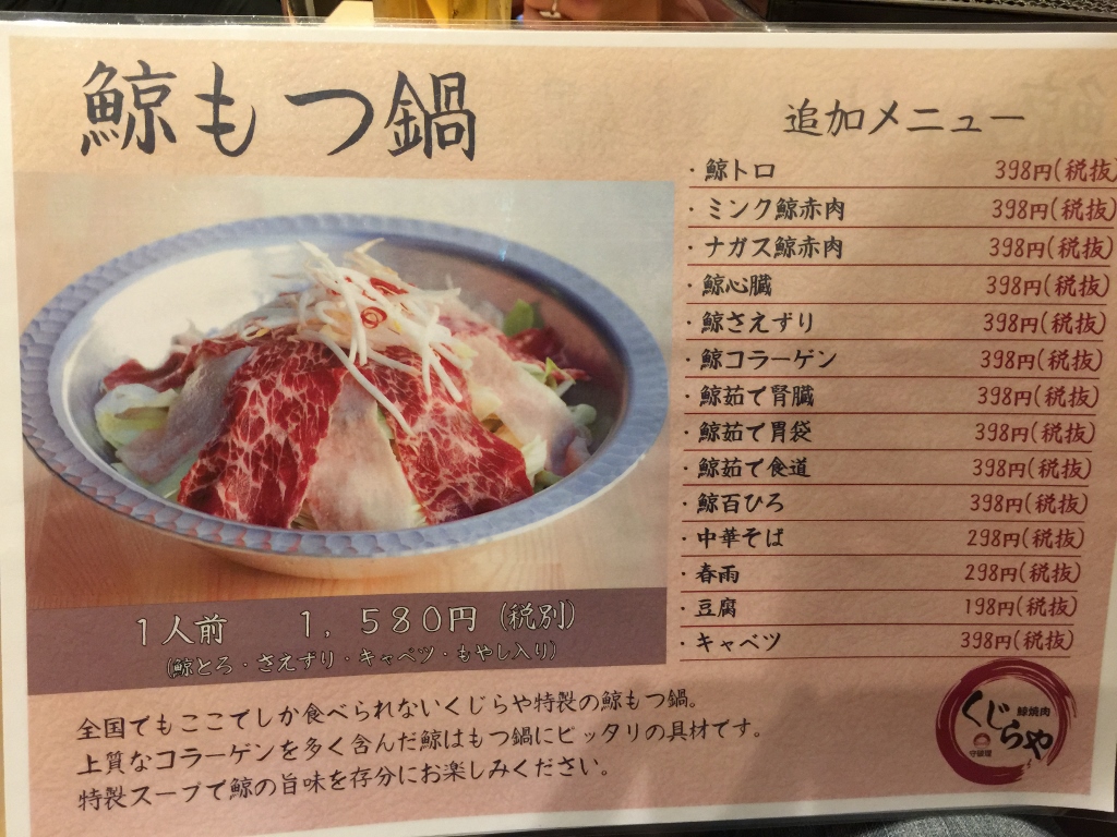 日本餐廳的鯨肉料理菜單 圖片來源:日媒