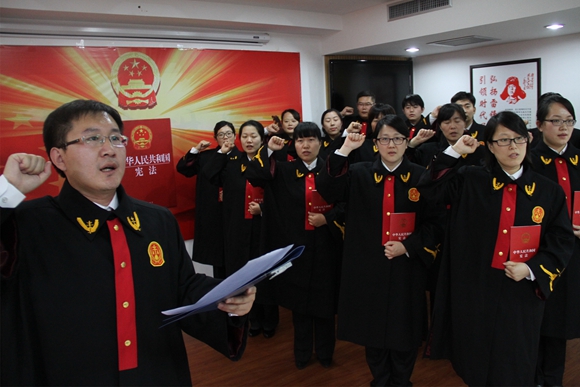2014年12月20日是我國第一個國家憲法日,威海中院舉行了憲法宣誓儀式(圖片來源:新華網)