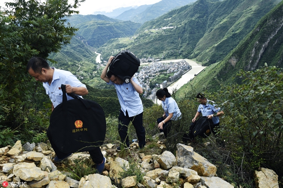 2017年9月8日,重慶市雲陽縣人民法院第四人民法庭的法官翻山越嶺來到上壩鄉東陽村,在農家門口開庭審理一件村民打架損傷賠償糾紛案。(圖片來源:東方IC)