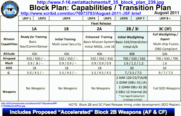 但JPO打了一個馬虎眼,F-22的Block 20軟件與F-35的Block 2B是完全不同的兩個概念。Block 20已經是Block 10的升級,而Block 10是最初的完成狀態,對應於F-35的Block 3F。而F-35的Block 2B在一開始就是過渡階段的半成品,3F才是完成狀態。