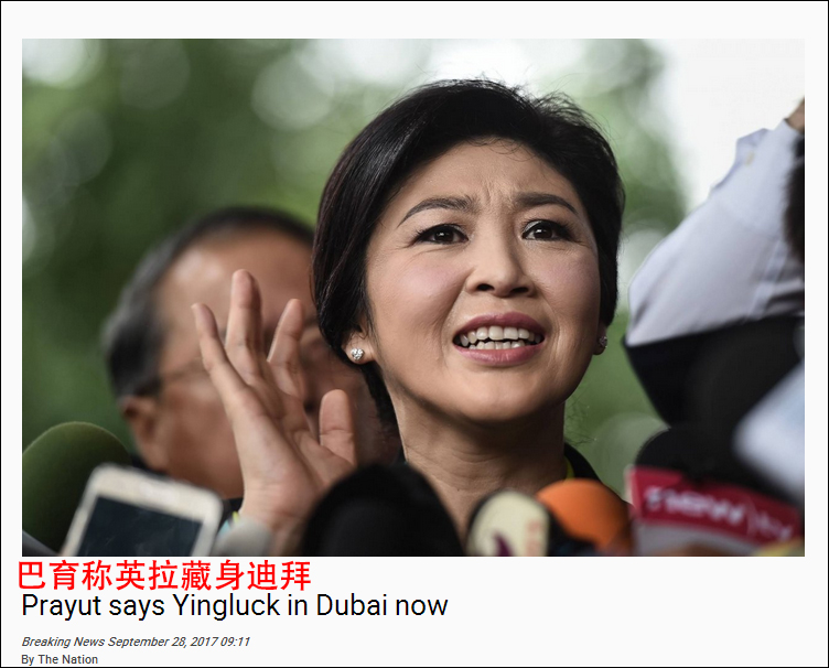 海外網援引泰國《民族報》消息,當地時間28日,泰國總理巴育稱,確認英拉藏身迪拜。