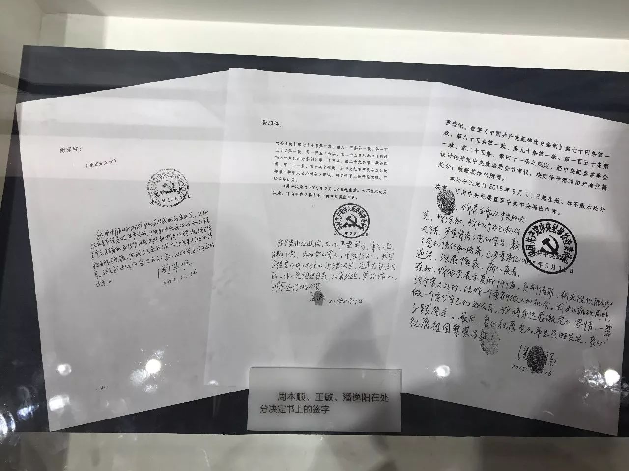 周本順、王敏、潘逸陽三人在中央紀委處分決定上的簽字首次曝光。
