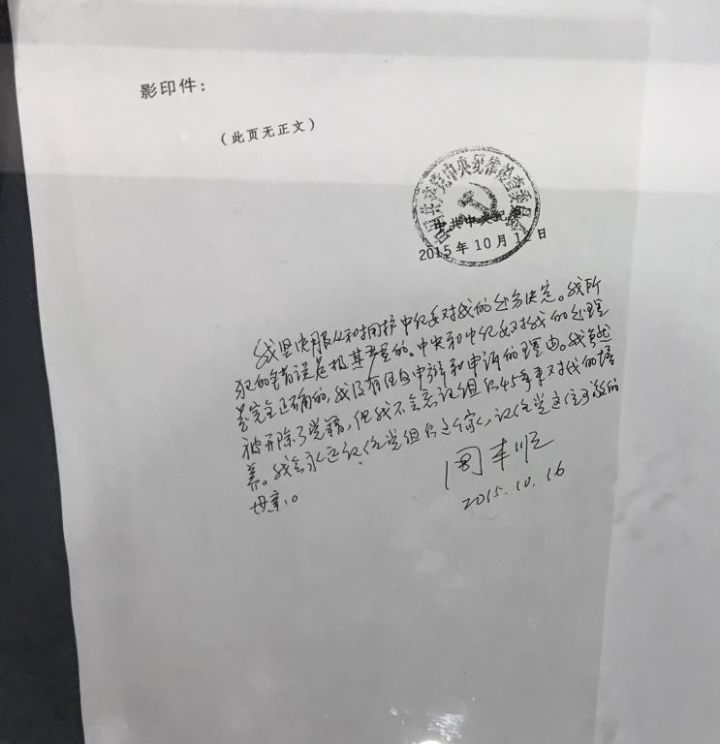 我自3月15日被中央紀委兩規以來,經過組織上耐心、細緻、深入地思想教育,思想受到了淨化,靈魂受到了洗禮,深刻認識到自己違紀違法錯誤的嚴重性,我願意接受組織上的任何處理和法律上的任何處罰,並作出深刻的懺悔。