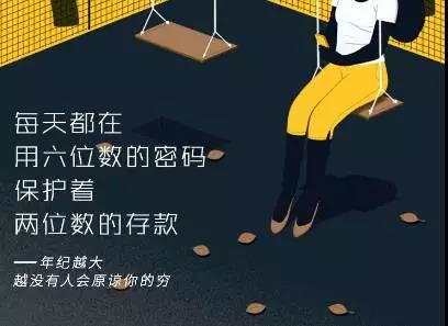 這組文案由16副風格統一的人物海報組成,再配上“你每天都很困,只因為你被生活所困”、“每天都在用六位數的密碼保護着兩位數的存款”的文字,引發了廣大網友熱議並轉發刷屏。這組海報最後引出了“讓理財給生活多一次機會”的主題,從而達到“上支付寶搜XX基金財富號”的推廣目的,讓廣大網友在“扎心”的同事,也誤以為是支付寶的創意。