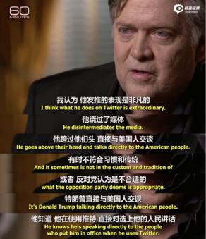 白宮前首席顧問、首席戰略師斯蒂芬·班農首次接受電視採訪時就對特朗普的“推特治國”大加讚賞