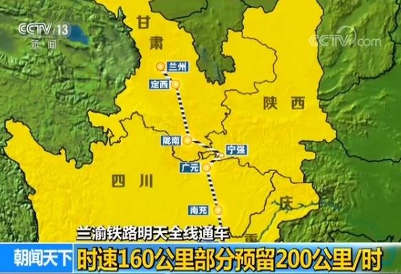 蘭州至重慶鐵路途經甘、陝、川、渝三省一市22個市縣(區),是客貨共線雙線電氣化國家I級鐵路,設計時速160公里,有條件路段預留200公里/小時。正線全長886公里,2008年9月開工。全線通車後,蘭州到重慶運輸距離由1453公里縮短至886公里,客車運行時間由21小時縮短為目前的12小時,運營後還會大幅縮短時間,改變了此前必須取道西安的線路;同時,途徑重慶到新疆、歐洲的中歐班列將不再繞行隴海、西康、襄渝鐵路,將通過蘭渝線直通蘭州。