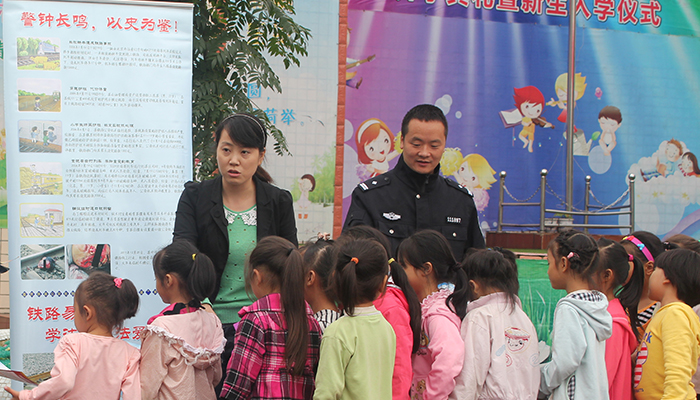 何世林生前到學校對小學生進行安全教育。 警方供圖