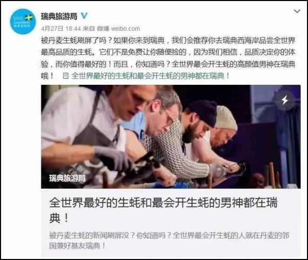 看着這個話題被炒熱,瑞典眼紅了,於是瑞典旅遊局又發了一個類似的話題:
