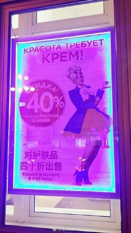 不過,顯然他們對中文有些誤解。例如,前段時間有網友在俄羅斯就拍到了一些商家強行翻譯的中文。