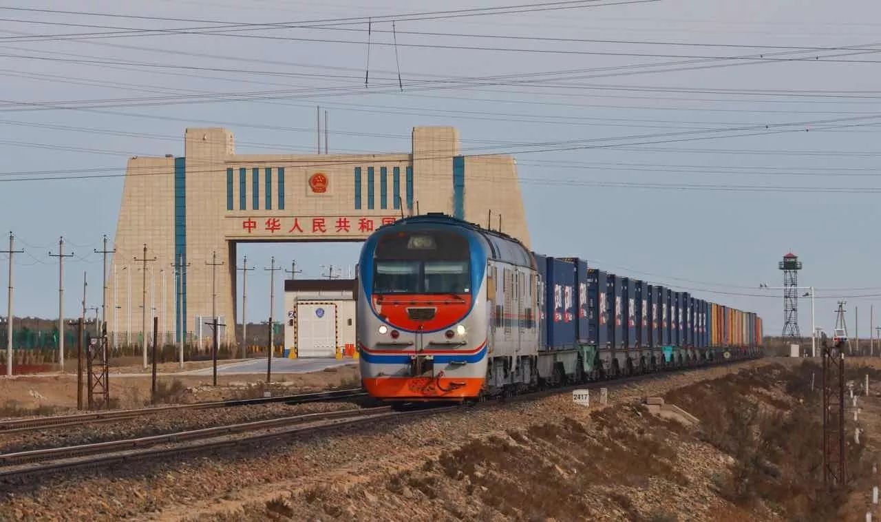 一列中歐班列從新疆阿拉山口口岸駛出國門