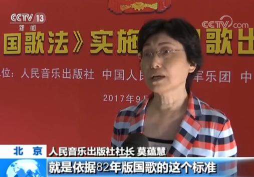 人民音樂出版社社長 莫藴慧:現在這個版本就是依據82年版國歌的這個標準,簡譜和五線譜分開排的,最後以我們樂譜出版的標準把它呈現出來。