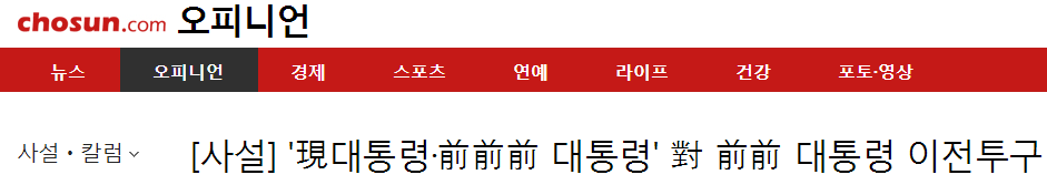 《朝鮮日報》稱,韓國現總統聯合“前前前”總統勢力與“前前”總統李明博開始了你死我活的鬥爭。