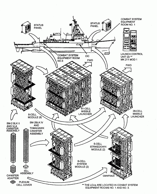 對於中國而言,簡單地將國產通用垂直髮射系統與美國的MK-41相等同,並不是特別科學的一件事。MK-41研製於上世紀70年代,最初僅僅用於容納標準-2艦空導彈以下的各類戰術導彈,因此其發射筒直徑被限定為635mm,發射系統長度也被設定為6.8米的“戰術型”,後來為了容納“戰斧”巡航導彈,美軍才推出了長度為7.7米的“打擊型”MK-41作為其標準發射箱,但其尺寸已經被限制了。在冷戰背景下的標準任務中,美軍的“提康德羅加”級導彈巡洋艦或者“阿利·伯克”FlightI/II級驅逐艦上每艘只有26個“打擊型”長度的MK41發射單元,“阿利·伯克”FlightIIA型則增加到32個單元。在目前的大多數狀態下,這些“打擊者”模塊基本都用來塞滿“戰斧”導彈,而在最近的幾次美國海軍的對地打擊作戰中,發射“戰斧”導彈的數量也差不多都保持在每艦30發左右。當然,理論上所有“伯克”級和“提康德羅加”級上的MK41都可以更換為“打擊者”長度,在未來美國海軍需要同時在艦上部署大量“戰斧”巡航導彈和“標準-3”反導導彈(同樣需要裝備較長的“打擊者”模塊)時,自然就會將更多“戰術型”更換為“打擊者”。不過其他的很多艦艇就沒有那麼幸運了。很多國家只能裝備“戰術型”發射裝置的艦艇也許一輩子也沒有辦法發射“戰斧”(除非選擇加高艦面換裝“打擊者”模塊),而像美國瀕海戰鬥艦這樣原本只預留了“自衞型”5.3米超短髮射箱的艦艇,則只能在“改進型海麻雀”和“北約海麻雀”之間變換選擇了。