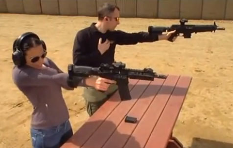 當然,這種射擊技巧需要一定的訓練,掌握射擊姿勢,不過射擊過程中無法瞄準,基本只能過個癮,撞火射擊的英文名稱“Bumbfire”也隱含了“蹦跳射擊”的意思,開火的時候是無法控制武器的