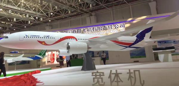 第十一屆珠海國際航展,中國商飛公司首次攜1:10比例的寬體客機模型亮相。(圖片來源:澎湃新聞)