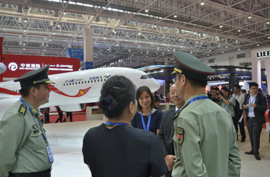 珠海航展上商飛向中央軍委裝備發展部介紹寬體機項目(作者供圖)