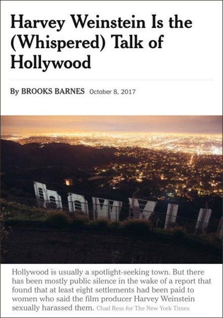 《紐約時報》報道:好萊塢對哈維的(性騷擾)指控充耳不聞