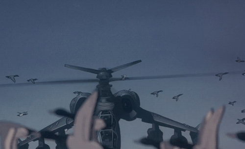 現在畢竟不是冷戰時期,不需要火力跟固定翼攻擊機一樣強大的武直(圖為日本動漫《機動警察》中安裝A-10的GAU-10型7管轉管機炮的超級武裝直升機)