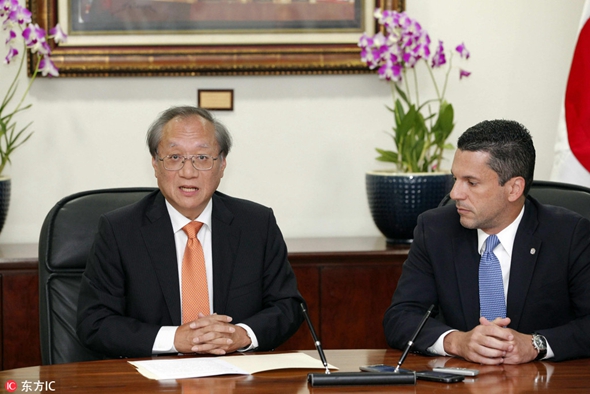 2016年8月25日,巴拿馬外交副部長Luis Miguel Hincapi(右)與日本大使磯部洋明(左)簽署CRS税收信息交換協議(圖片來源:東方IC)