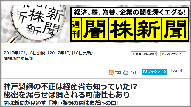 日本經濟雜誌《鑽石》旗下網站“鑽石在線”報道稱,神鋼造假一事很有可能早被日本政府主管部門經濟產業省獲悉,但後者一直在替神鋼保守秘密。