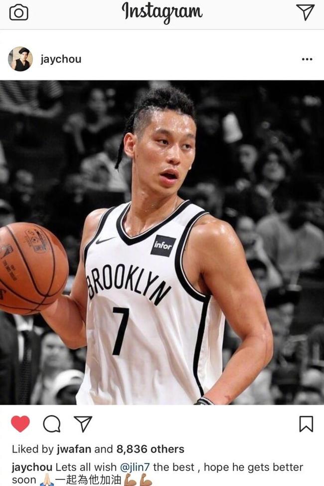 周杰倫:希望林書豪馬上好起來,一起為他加油 圖片來源:instagram