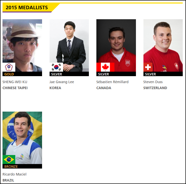 此次廚藝大賽獲獎選手(世界技能大賽官網截圖)