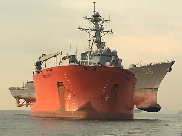 據美國海軍第七艦隊官方“臉書”消息,負責運載受傷的“麥凱恩”的這艘半潛船名為“財富”號(MV Treasure),觀察者網注意到,該船承建者為中遠海運重工旗下的舟山中遠船務,於2008年交付世界著名的荷蘭DOCKWISE航運公司。