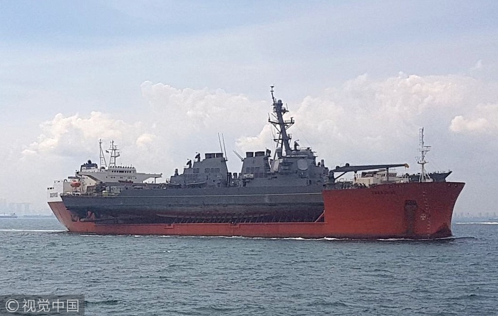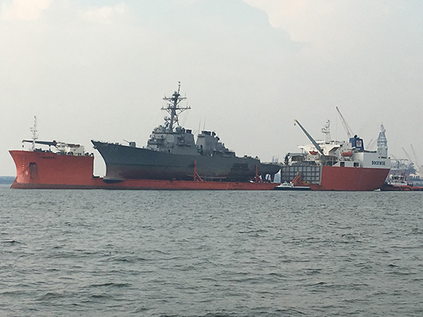 被撞美軍驅逐艦“麥凱恩”號被中國造半潛船“公主抱”回基地