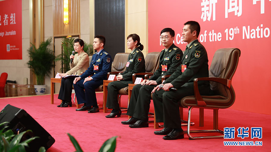 女士們、先生們,記者朋友們,大家晚上好!歡迎大家出席十九大新聞中心第七場集體採訪。一直以來,大家對人民軍隊都非常關注,所以我們今天非常高興地邀請到四位來自軍隊的黨代表,和大家作一個面對面的交流。首先我先介紹一下他們,然後也請他們作一下自我介紹。首先有請空軍航空兵某團團長劉鋭同志作自我介紹。