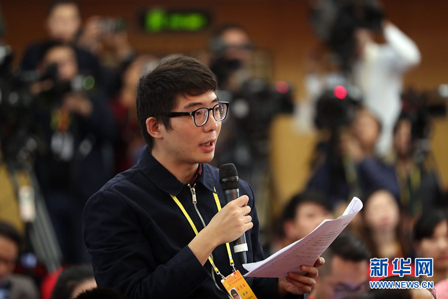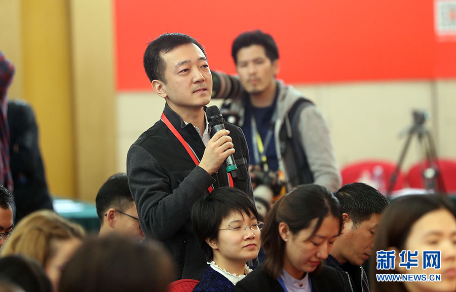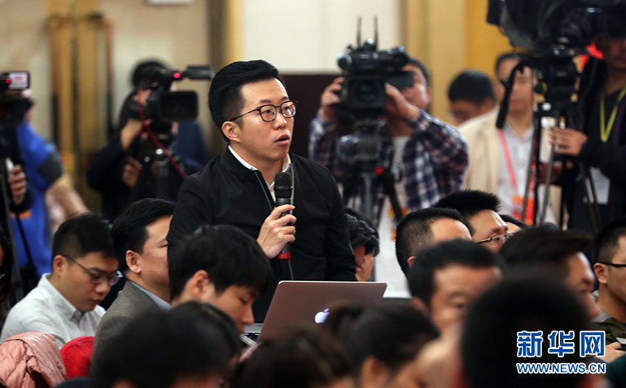 10月22日,十九大新聞中心在梅地亞中心二層新聞發佈廳舉辦集體採訪活動,主題為“中國特色強軍之路邁出堅定步伐”。圖為鳳凰衞視記者提問。新華網 郝廣鵬攝