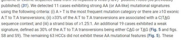 當時,他們已經運用了這個結果,對肝癌進行篩查,在93例中,發現11例強的A到T突變特徵,19例弱特徵,認為這11人有可能與馬兜鈴酸有關。但這個強弱呢,只是簡單定了個標準。