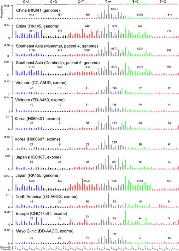 還有一項新突破,就是比較了各地區的1400例肝癌患者數據,得出中國大陸與台灣地區肝癌患者發現馬兜鈴酸“指紋”的比例高於其他地區。
