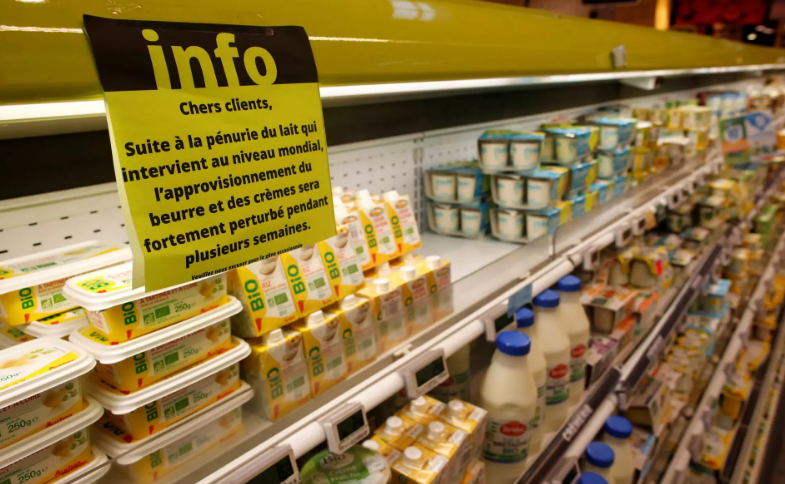 現在,糟糕的後果出現了——糕點師和麪包師不能獲得足夠的批發黃油來維持正常的生產水平。許多法國超市(包括布列塔尼或諾曼底等歷史悠久的黃油生產地區),不得不在空蕩蕩的黃油貨架上擺上帶有歉意的標籤。