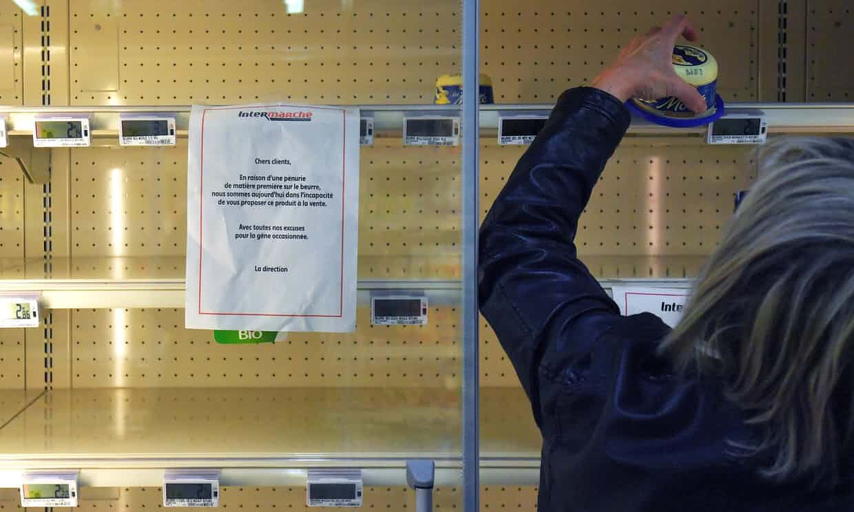 在法國的中央謝爾省,一個小糕點生產商的業主Claude Francois將工人們的工作時間減少了70%,因為她無法獲得足夠的黃油來維持產量。她説:“自8月中旬以來,我們就已經開始施行限量供應了。我們每月需要3噸的黃油來維持生產,然而往往只能得到1噸,這種情況下,我們無法長期維持生產。”