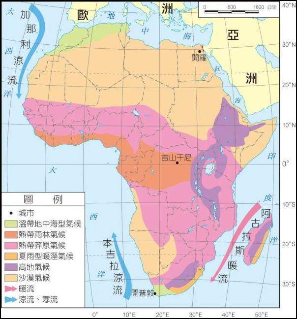 除此之外,地形對農業發展也有着重要的影響,非洲地形見下圖:
