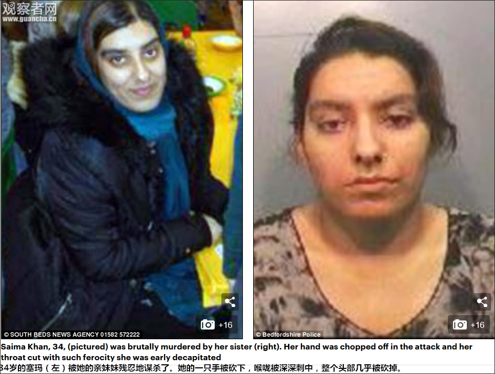 據英國《每日郵報》當地時間10月26日報道,27歲的英國女子沙巴·汗(Sabah Khan)在家中殘忍地謀殺了她34歲的姐姐塞瑪·汗(Saima Khan),用刀刺向她68次,原因是為了與偷情四年的姐夫在一起。