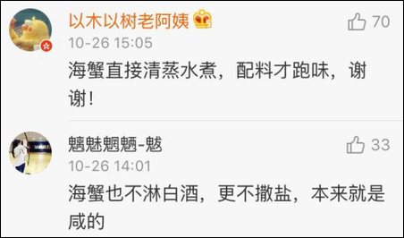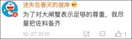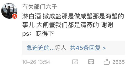 在博主如此“沉重”的微博下,網友們竟然一致討論起了大閘蟹的做法……