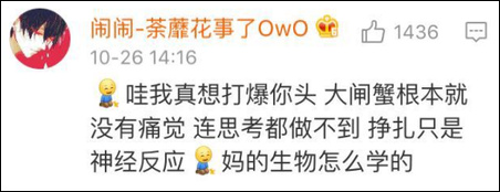 還有網友表示,大閘蟹根本就沒有痛覺好嗎!