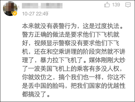 但也有不少網友認為國航處理方式和警方執法過於簡單粗暴。