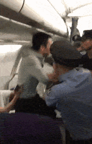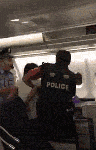 一名警察得知國航因航班延誤已經為旅客安排酒店但李磊夫妻不接受後,對兩人採取了強制帶離。