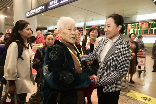 中午12點36分,飛機在長沙黃花機場降落。湖南省婦聯黨組書記、主席姜欣和副主席盧妹香早早等候在接機口,迎接這些闊別家鄉已久的女兒們。