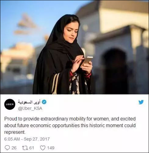 沙特優步也發表推文:為向女性提供特別服務感到驕傲,為這一歷史性時刻帶來的經濟機遇感到興奮。