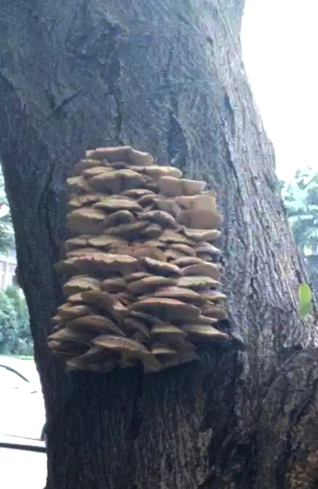 據錢江晚報11月8日報道,6日,有一名網友報料説,在杭州沈半路的一棵粗大的構樹樹身上,長了一大片“蘑菇”,毛估估有6斤多,可惜無人採摘,只因長在圍牆內。據説有多人都想進去採蘑菇,但都被大門口的保安攔住了。