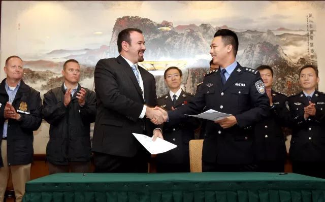 2017年10月16日,公安部國際合作局代表(右)和美國司法部法警局代表簽署移交備忘錄 新華社記者/凡軍 攝
