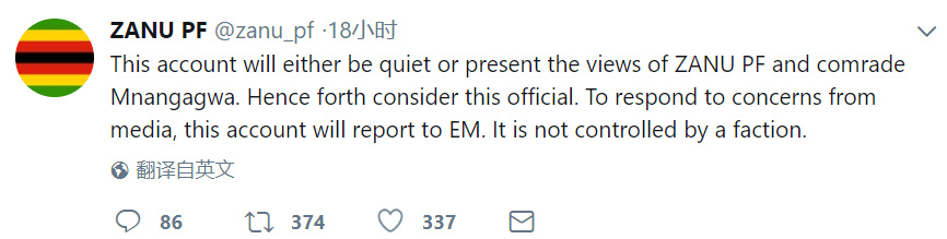 (本帳號既不會停止更新,也不代表ZANU PF或姆南加古瓦同志的單方面意見。本帳號仍可視為官方帳號。為回應媒體關切,本帳號將向姆南加古瓦彙報情況。本帳號並未受小團體控制。)