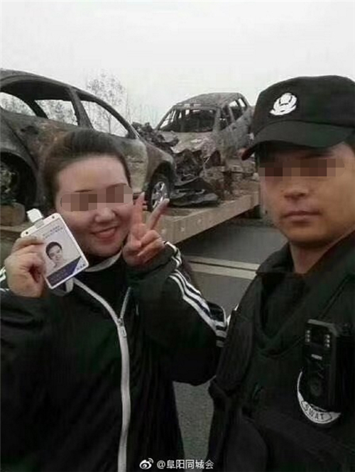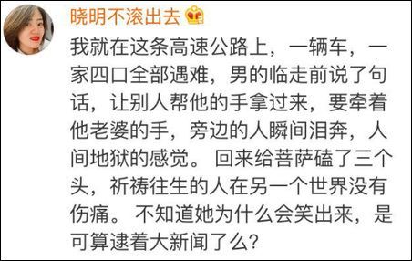但是,潁上交通音樂廣播的主持人卻在車禍現場比剪刀手微笑自拍,此舉受到網友抨擊。