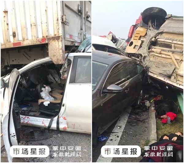 受大霧天氣影響,15日上午,滁新高速阜陽段發生連環交通事故,30餘輛車連環相撞,造成18人死亡,多人受傷,現場慘烈。
